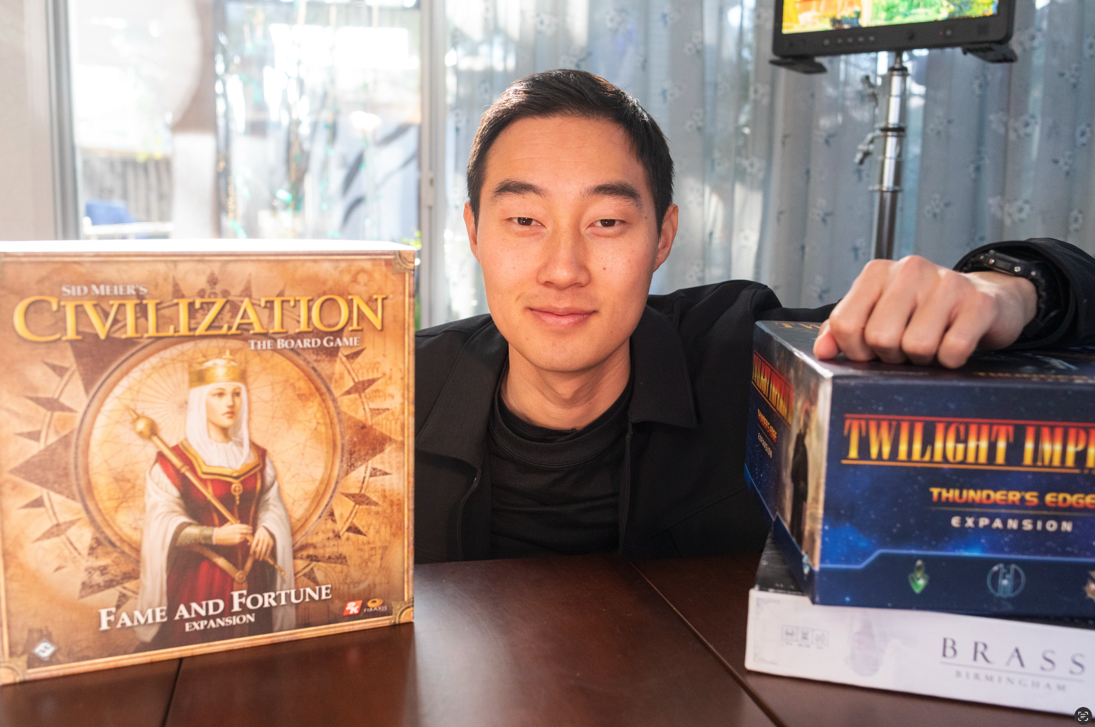 Pranav got into board games early in high school through Ashton and his game group. However, he really picked up tabletop gaming during the pandemic. On the benches at a local park, Ashton and Pranav masked up and played many, many games. Currently, his favorite games include This War of Mine, Spirit Island, Star Wars: Rebellion, and Captain Sonar. He has also built a few pieces of board game furniture on the channel.