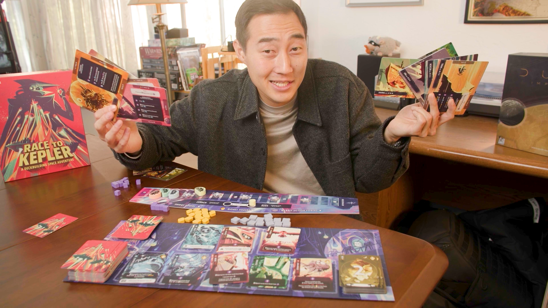 This is a score for the prototype of Race to Kepler, weighing the pros and cons against the audience it’s meant for: deckbuilding players who want a step up in complexity, but do not want more phases, heavier overhead, or a pile of extra systems. For that crowd, Race to Kepler earns an 8/10. It meaningfully addresses the low-interaction problem in simpler deckbuilders by adding bidding, and it gets to the combo point fast. It is also easy, if not easier, to set up and teach than many deckbuilders. At $40 for the standard Kickstarter, the value is excellent. (If you want the nicer wooden pieces, that’s in the $80 tier.)